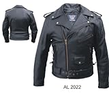| ✚✚✚ Men's Basic Premium Buffalo Leather Motorcycle Jacket w/ zipout liner & side lace in Antique hardware AL 2022 -64 This jacket is a beautiful motorcycle jacket with many comfortable features.----- Made of Premium Buffalo Leather which is top quality leather made to last , features a Z/o lining, side laces sor size adjustment, Has many pockets, Zippered sleeves, antique finish hardware---- This jacket is manufatured by Allstate Leather the most trusted name in motorcycle leather --- RETURN POLICY, We are confident you will love this jacket, but in any case you are not happy we have a 30 DAY RETURN POLICY you have to contact us for an RMA # within 30 days of the purchase date . ------- SIZING INFO, To get the exact size and avoid size exchanges measure around your chest under the arms and take the next size of what you measure, for example if you measure 40 or 41 go with a 42. for more sizing info. refer to the size chart by clicking on the company name above and follow the link at the bottom of the page.